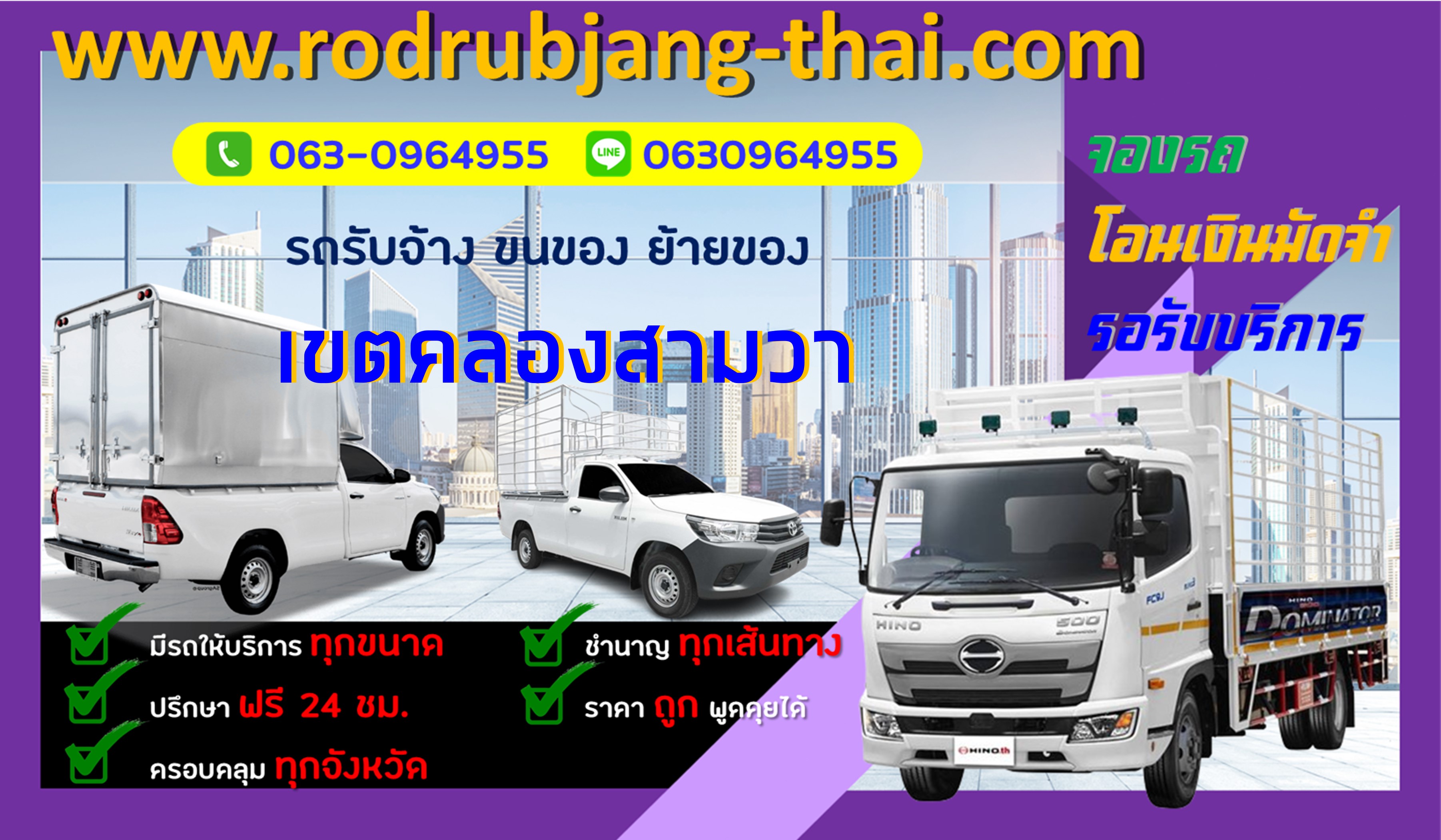 การขนของย้ายบ้าน ย้ายคอนโดฯ ย้ายสำนักงาน-ออฟฟิศ สิ่งที่จะขาดไปไม่ได้ก็คือบริษัทที่มาให้บริการ ลูกค้าส่วนใหญ่อาจจะกังวลว่าบริษัทที่จะมาขนย้ายหรือขนส่ง เขาสามารถดูแลสิ่งของของเราให้ปลอดภัยและไม่เสียหายได้ไหม ? ลูกค้าไม่ต้องกังวลเรื่องนี้เลย เพราะรถรับจ้างส่วนใหญ่เขารู้ว่าต้องจัดของยังไง ทำยังไงไม่ให้เกิดความเสียหายและที่สำคัญรถทุกคันก็มีประกันรถและประกันสินค้าอยู่แล้ว จ้างรถขนของย้ายบ้านเขตคลองสามวา บางชัน สามวาตะวันตก สามวาตะวันออก ไม่ว่าซอยจะเล็ก จะแคบ ก็สามารถให้บริการถึงที่บ้านหรือที่ทำงานได้ rodrubjang-thai.com มีรถรับจ้างให้บริการทุกประเภทไม่ว่าจะเป็น รถกระบะรับจ้าง รถสี่ล้อใหญ่รับจ้าง รถ6ล้อรับจ้าง รถเฮี๊ยบรับจ้าง เป็นต้น